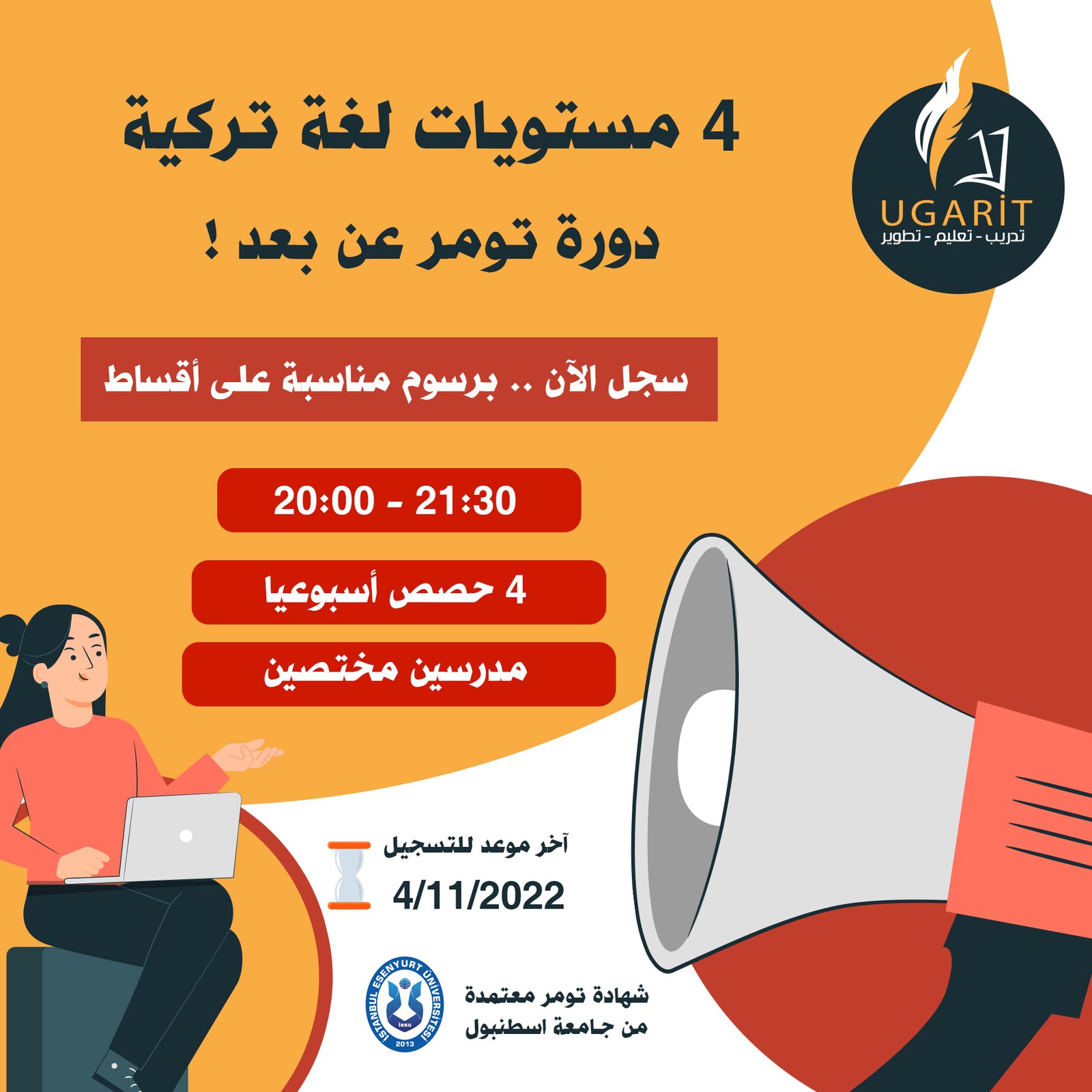 13/10/2022 | شارك بتعليقك 4 مستويات لغة تركية شارك بتعليقك إلغاء الردلن يتم نشر عنوان بريدك الإلكتروني. الحقول الإلزامية مشار إليها بـ *التعليق * الاسم * البريد الإلكتروني * الموقع الإلكتروني Δ